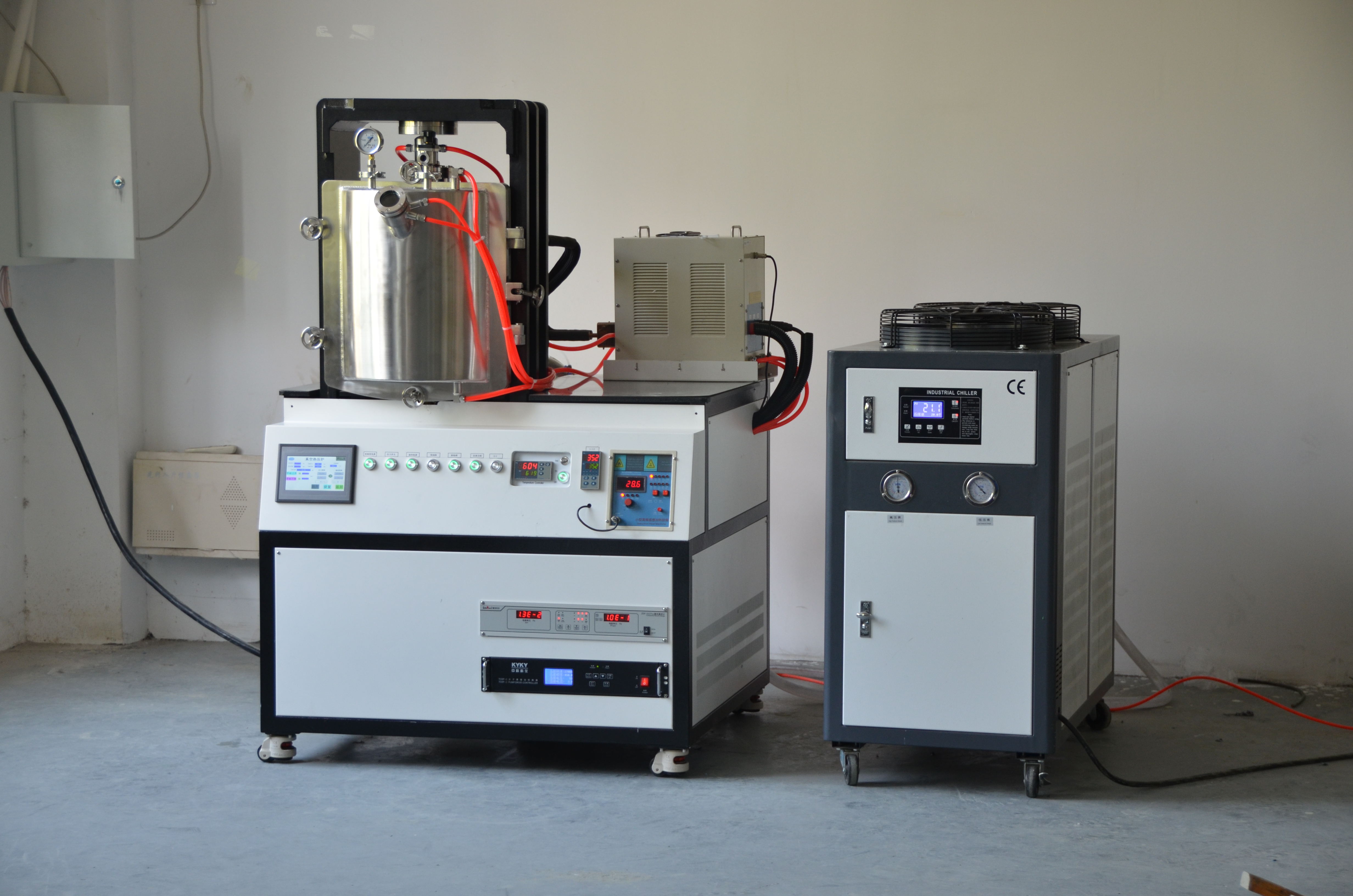 这款设备最高温度1800℃,压力5吨,真空度5*10-4Pa,优点有