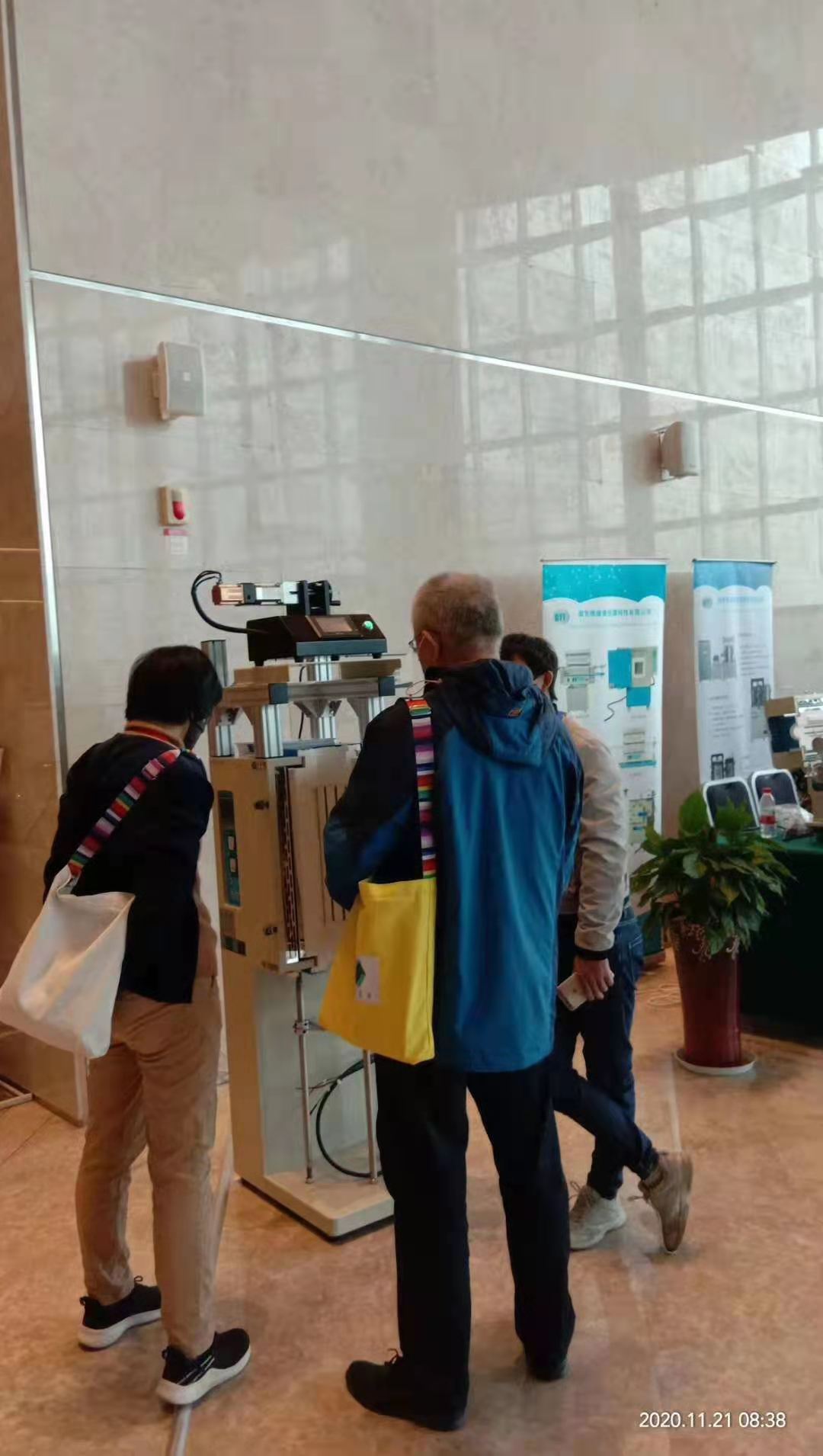 我公司工程师在第二届人工晶体学术会议上向祝世宁院士介绍晶体生长炉